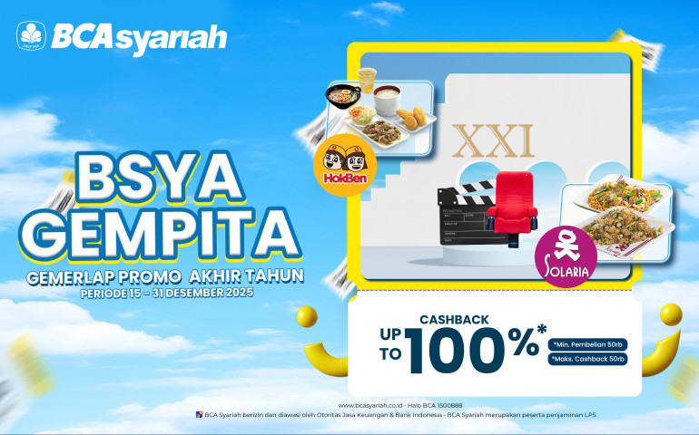 Dapatkan cashback sampai dengan 100% untuk transaksi di XXI, Solaria, dan HokBen dengan QRIS BSya Periode Program: 15 – 31...