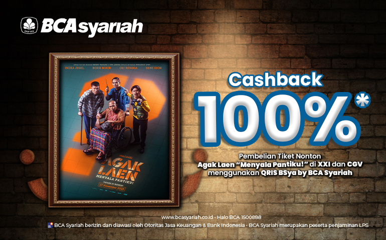 Pakai QRIS BSya, dapatkan cashback 100% untuk pembelian tiket nonton film Agak Laen 2: Menyala Pantiku Periode Program: 27 Nov - 31 Desember 20...