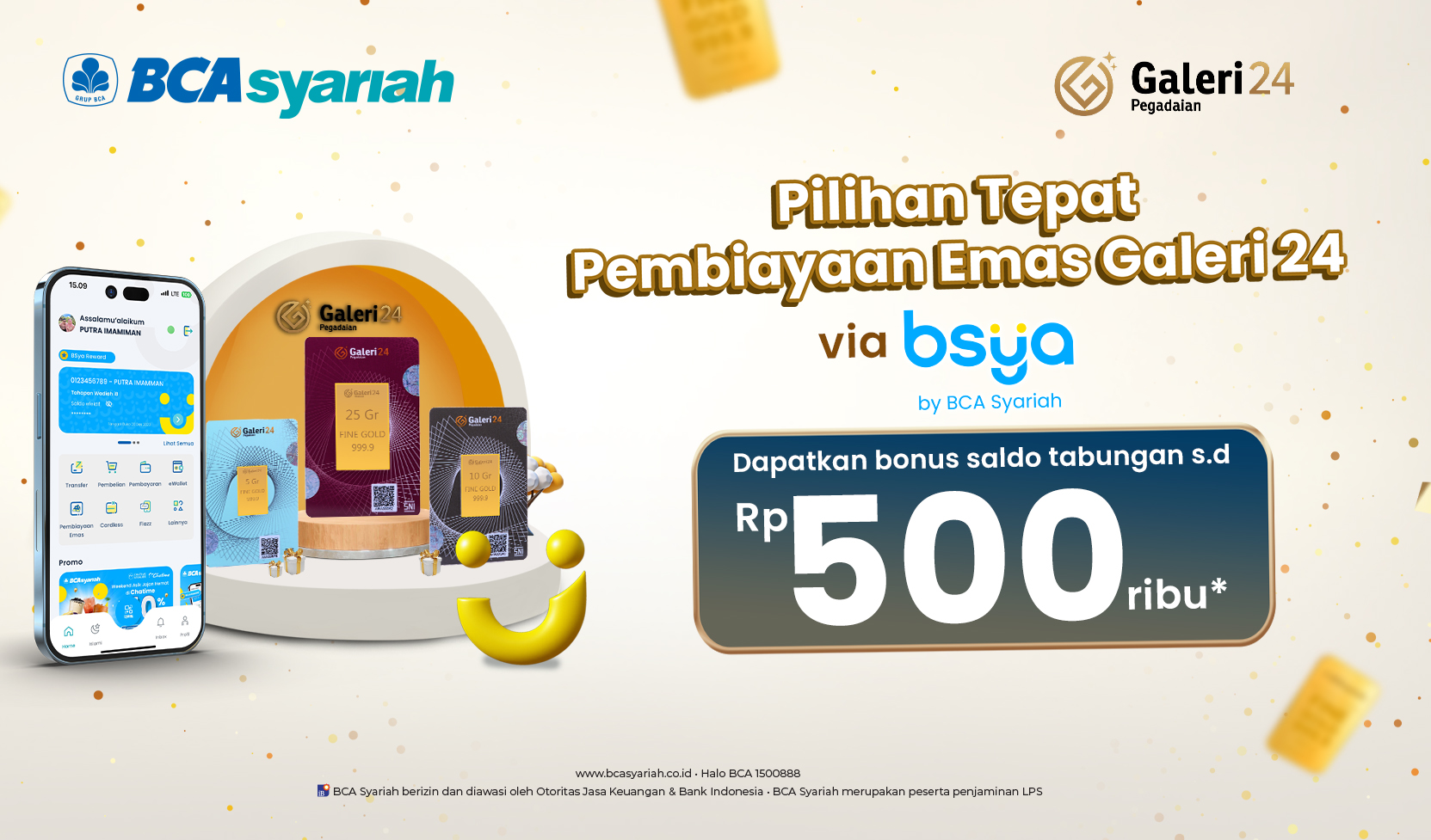 1. Promo ini hanya berlaku untuk pengajuan pembiayaan Emas pada aplikasi BSya by BCA Syariah mulai dari gramasi 5 gram
