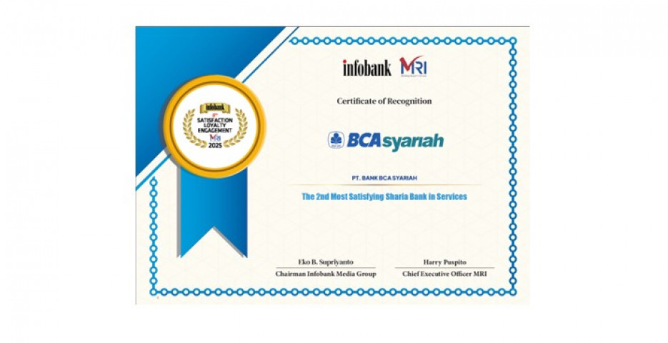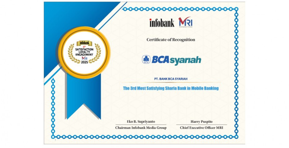 Komitmen dan dedikasi segenap manajemen dan karyawan BCA Syariah mendapatkan apresiasi dari berbagai pihak baik di bidang kinerja keuangan, kualitas layanan maupun tata kelola perusahaan.