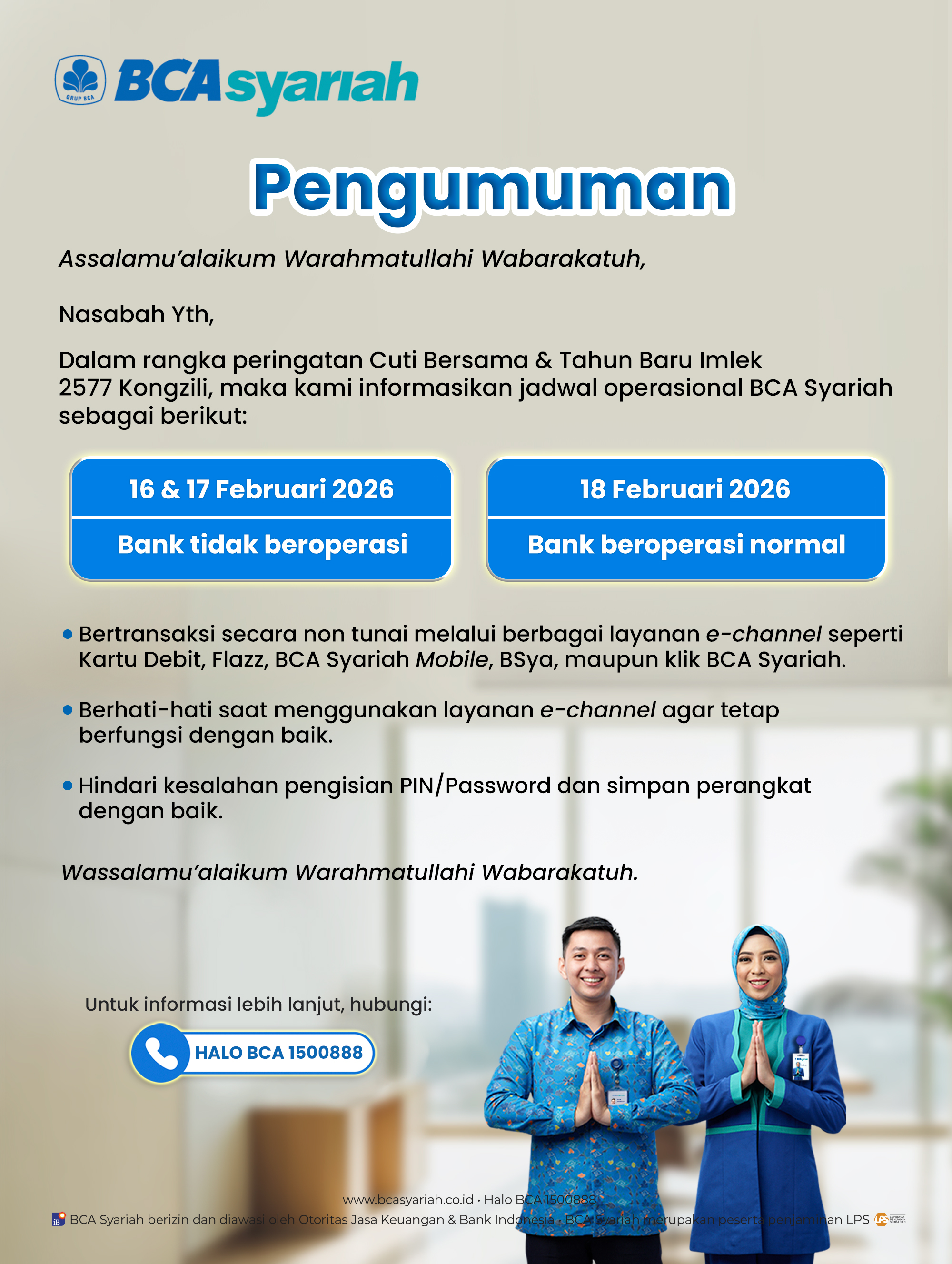 Pengumuman Operasional BCA Syariah Terkait Imlek 2026