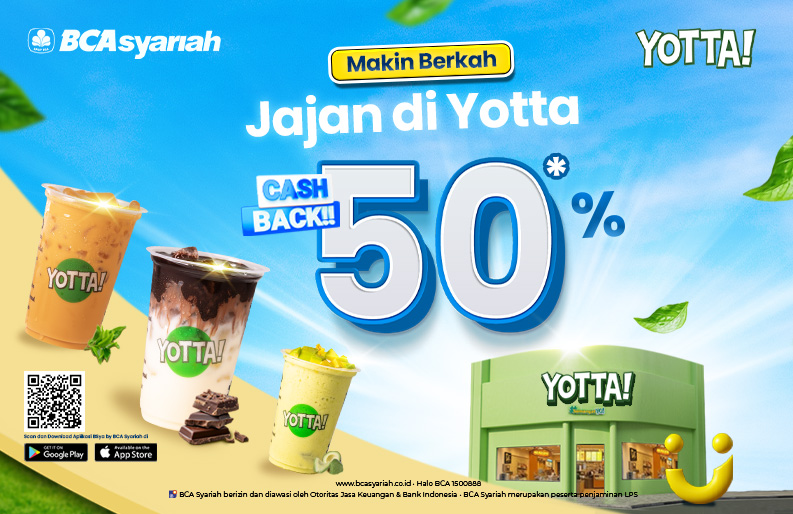 - Berlaku untuk 300 transaksi pertama per minggu di seluruh outlet Yotta.