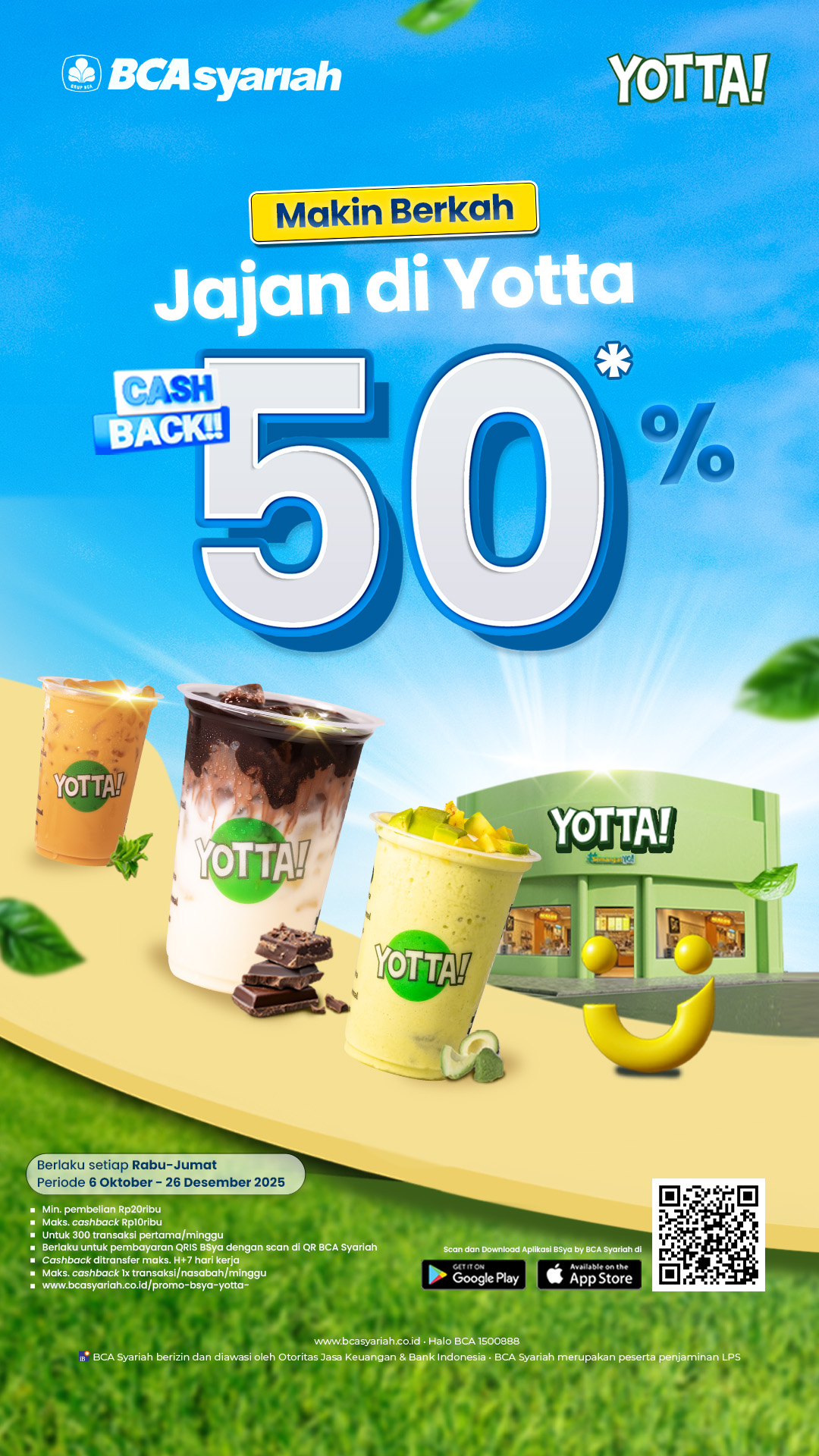 - Berlaku untuk 300 transaksi pertama per minggu di seluruh outlet Yotta.