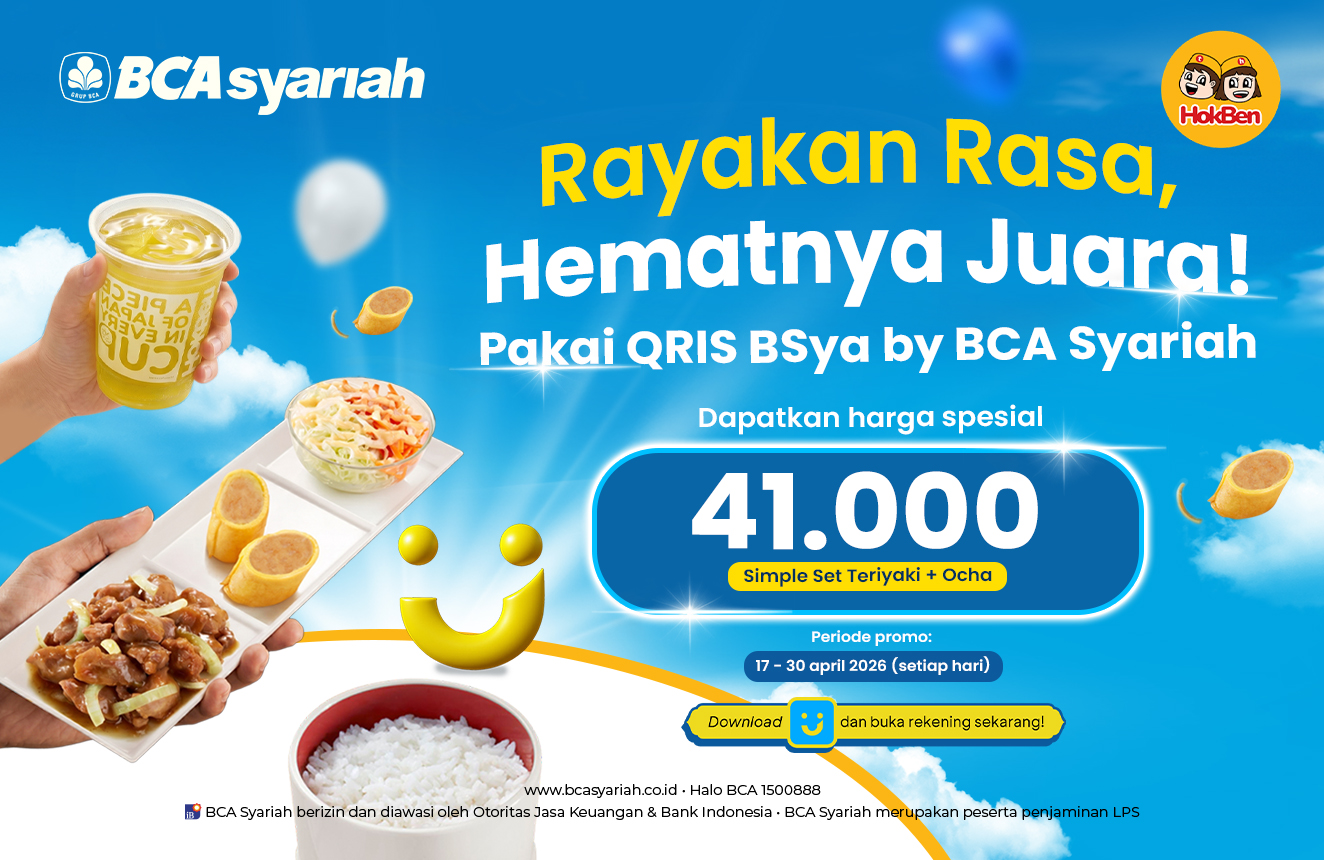 - Program Promo Hokben berlaku bagi seluruh nasabah BCA Syariah yang memiliki dan menggunakan aplikasi BSya